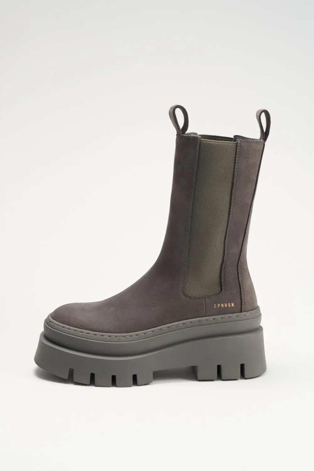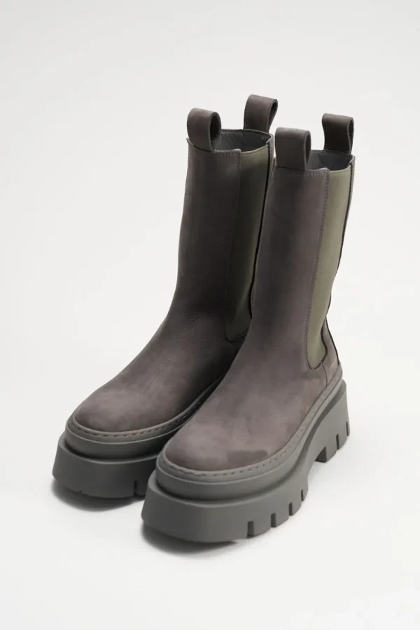 In Grau. Mittelhohe Chelsea Boots Aus Weichem Nubukleder. Verlängerte Chelsea-Silhouette. Runde Kappe. Elastische Einsätze. Zwei Zugschlaufen Am Schaft. Goldfarbenes Logo An Der Außenseite. Ein Monochromer Style Mit Ausdrucksstarken Details.Unsere Schuhe Werden In Kopenhagen Designt Und In Europa Hergestellt. Das Leder Stammt Aus Ausgewählten, Familiengeführten Manufakturen In Italien.